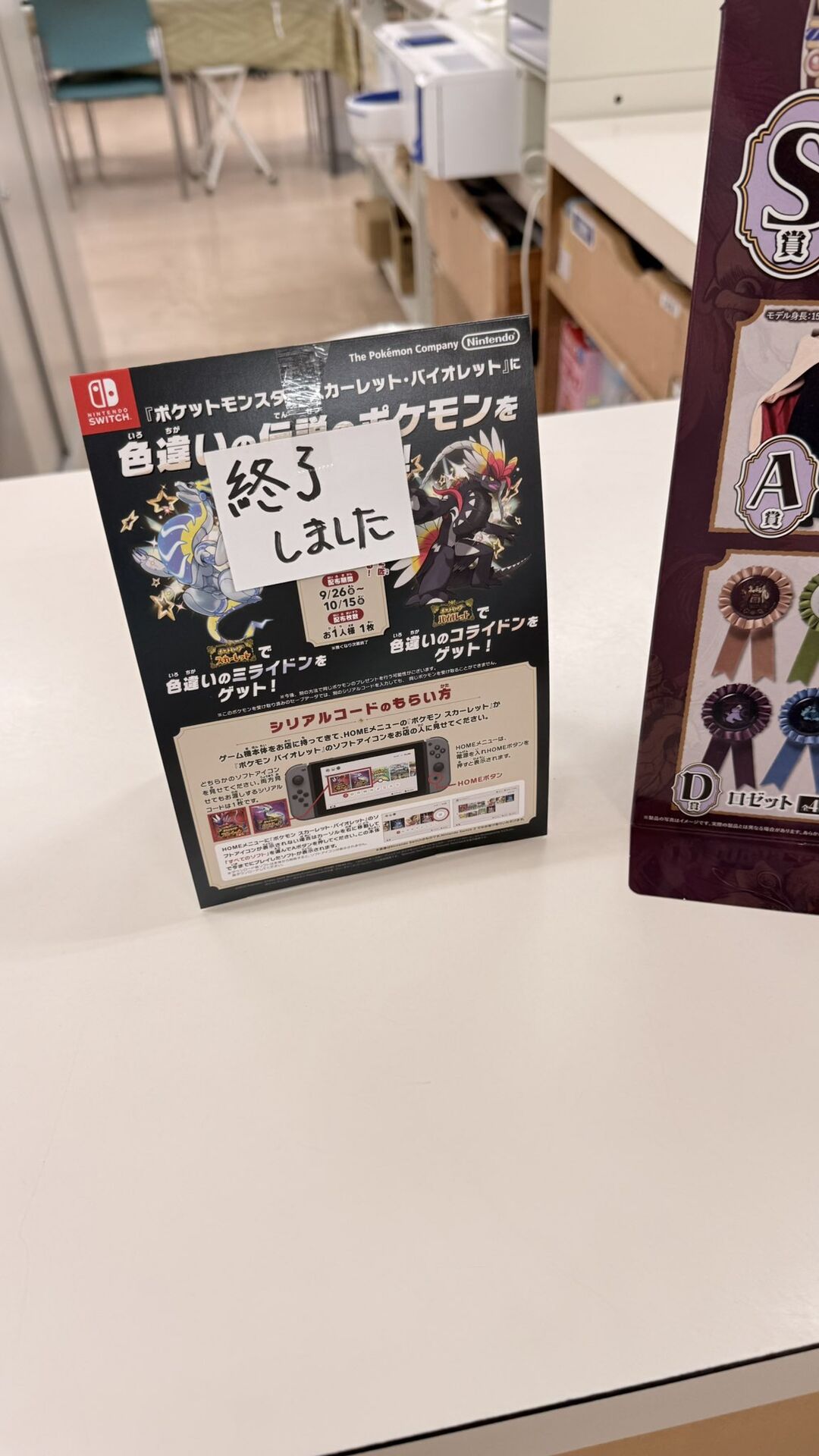 全国のゲーム取り扱い店(コンビニエンスストアや、一部店舗を除く)で、『ポケットモンスター スカーレット』には色違いのミライドンを、『ポケットモンスター バイオレット』には色違いのコライドンがもらえるシリアルコードをプレゼント。