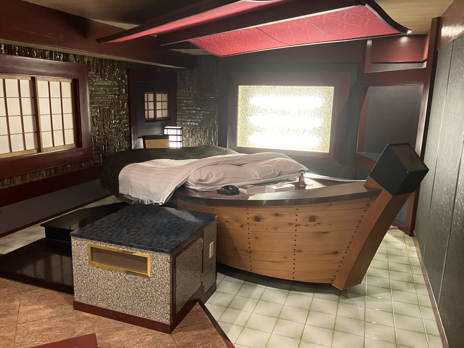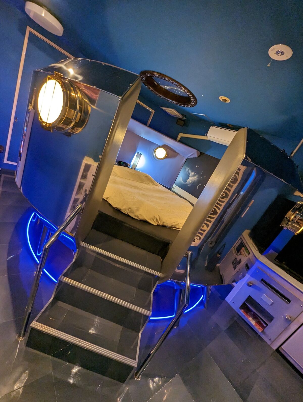 浜松に船の形したホテルあるけど、流石にベッドまで船は初めて見たな