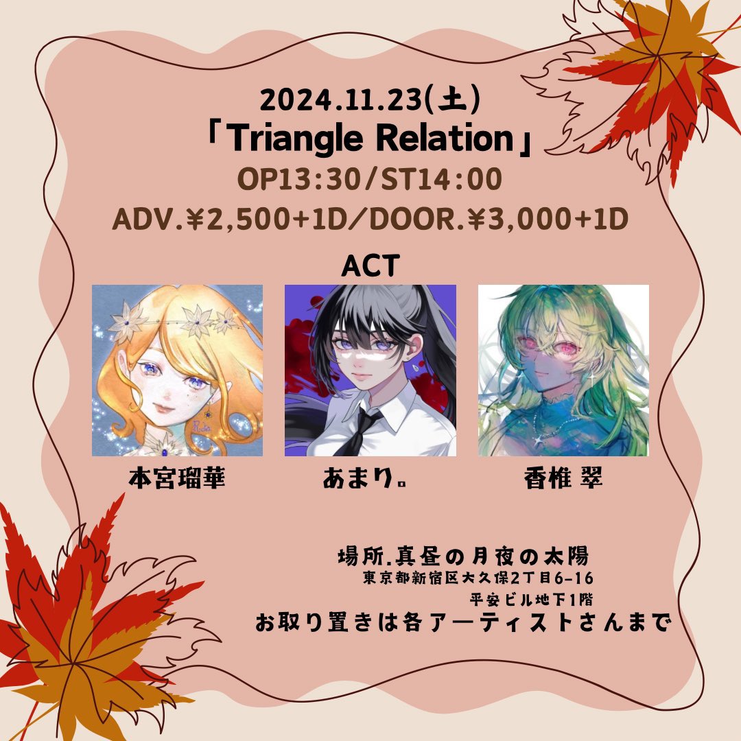 23(土) | 「Triangle Relation」イベントフライヤー open/start 13:30/14:00 |
