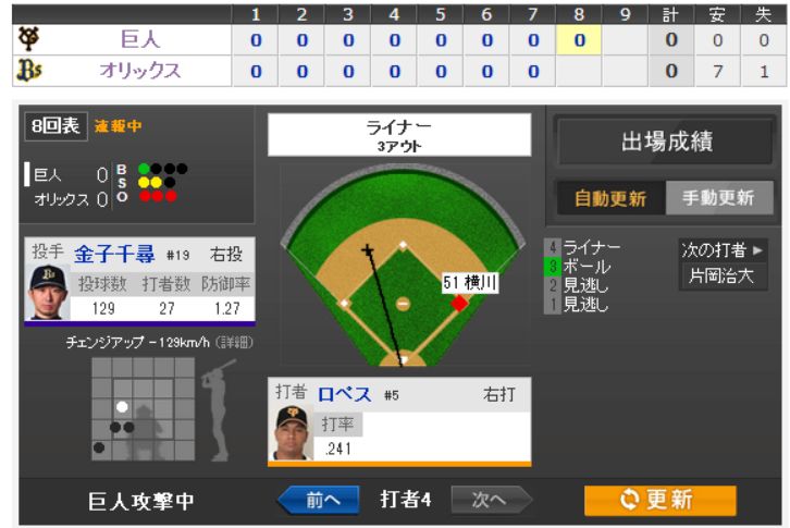 オリックス・金子千尋、8回までノーヒットノーラン継続中!しかし、味方打線も巨人エース菅野の前に沈黙で、スコア0対0... 2014年05月31日 カテゴリ:オリックス・バファローズ エース・守護神・主力 1: 名無しさん@おーぷん 2014年05月31日(土)19:32:19 ID:k9xhADQaZ 現在、8回表終了の時点でオリックス・金子千尋ノーヒット継続中!しかし、味方も巨人・エース菅野の前に得点0...WS000011 【オリックス・金子千尋、8回までノーヒットノーラン継続中!しかし、味方打線も巨人エース菅野の前に沈黙で、スコア0対0...】の続きを読む タグ :#オリックス #金子千尋 #巨人 #菅野智之 #ノーヒットノーラン