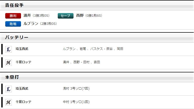 【4月30日】ロッテ3-2西武 ルーキー中村の先頭打者弾で先制!エース・涌井が8回2失点の好投で久々のカード勝ち越し! 2015年04月30日 カテゴリ:千葉ロッテマリーンズ 試合結果 1: 風吹けば名無し@\(^o^)/ 2015年04月30日(木) 21:14:31.12 ID:AjXTlqTc0.net no title no title no title 【【4月30日】ロッテ3-2西武 ルーキー中村の先頭打者弾で先制!エース・涌井が8回2失点の好投で久々のカード勝ち越し!】の続きを読む タグ :#ロッテ #西武 #試合結果 #中村奨吾 #涌井秀章