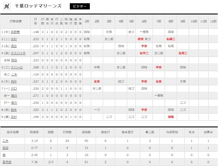 ボビー時代のロッテのスタメンwwwww 2016年04月28日 カテゴリ:千葉ロッテマリーンズ 2_2 1: 風吹けば名無し@\(^o^)/ 2016年04月24日(日) 20:22:23.30 ID:qW9PyoOL0.net 1 右 ベニー 2 一 バーナム.Jr 3 遊 西岡 4 指 井口 5 左 竹原 6 中 サブロー 7 捕 里崎 8 三 今江 9 二 ランビン ファッ!? http://www.marines.co.jp/gamelive/result/2009050101/ 【ボビー時代のロッテのスタメンwwwww】の続きを読む タグ :#ロッテ #バレンタイン #スタメン