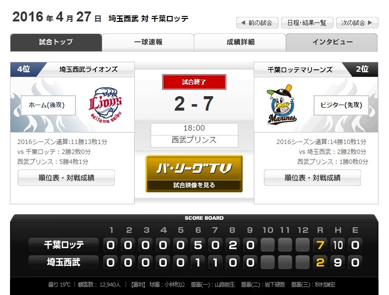 4月27日 西武2-7ロッテ 先発二木、6回1失点の好投で2勝目!打者一巡の猛攻、二桁安打で連勝! 2016年04月27日 カテゴリ:千葉ロッテマリーンズ 試合結果 ChDLcqDUcAAfH0j 1: 風吹けば名無し@\(^o^)/ 2016年04月27日(水) 21:26:07.09 ID:HBOBlCBS0.net わあい WS001079 WS001080 WS001081 WS001082 【4月27日 西武2-7ロッテ 先発二木、6回1失点の好投で2勝目!打者一巡の猛攻、二桁安打で連勝!】の続きを読む タグ :#ロッテ #西武 #試合結果 #二木康太