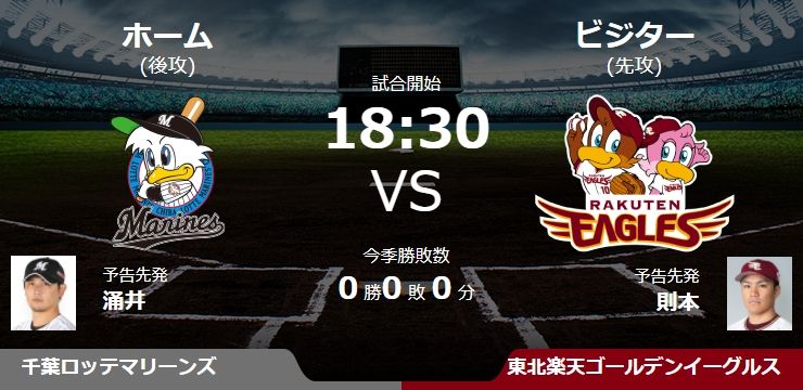 涌井(対楽天 7.89)ー則本昴(対ロッ 1.50)
