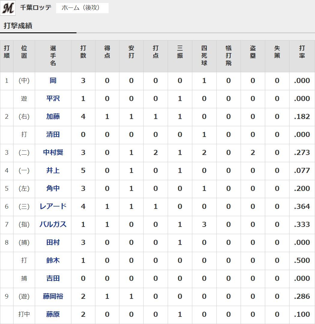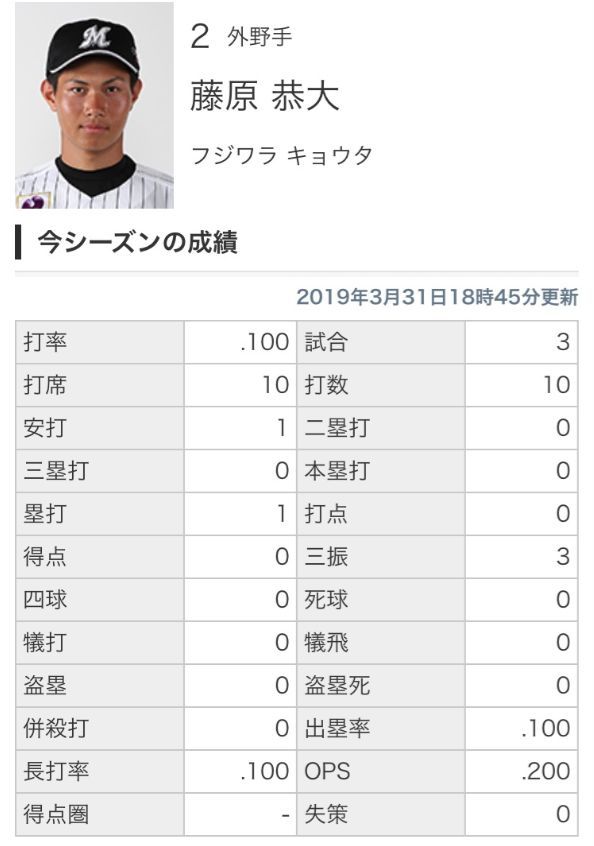 GIF画像 ロッテ藤原恭大 打率.100(10-1) 三振3 今日はあわやホームランかという打球も 2019年03月31日 カテゴリ:千葉ロッテマリーンズ ルーキー・若手 WS000012 1: 風吹けば名無し 2019年03月31日(日) 19:56:37.43 ID:nWmr1cBF0 やっぱ通用せんな WS000013 【GIF画像 ロッテ藤原恭大 打率.100(10-1) 三振3 今日はあわやホームランかという打球も】の続きを読む タグ :#ロッテ #藤原恭大