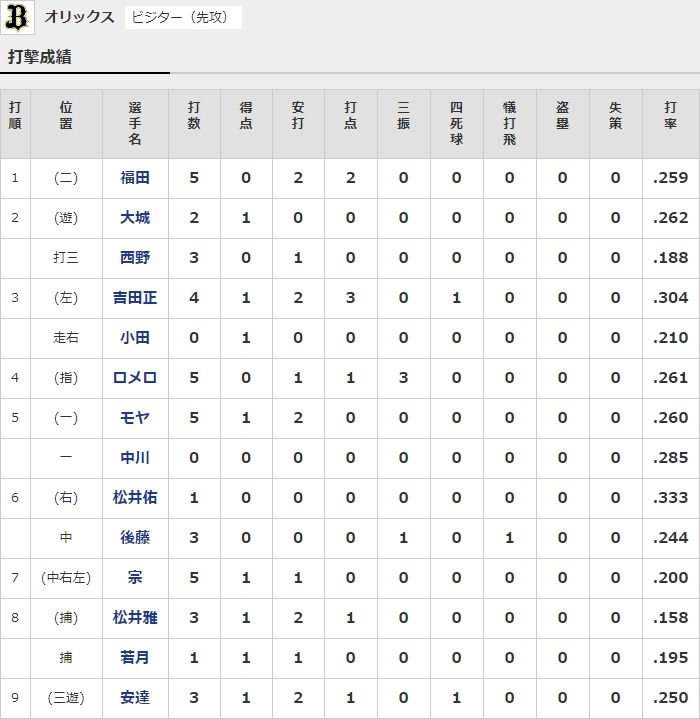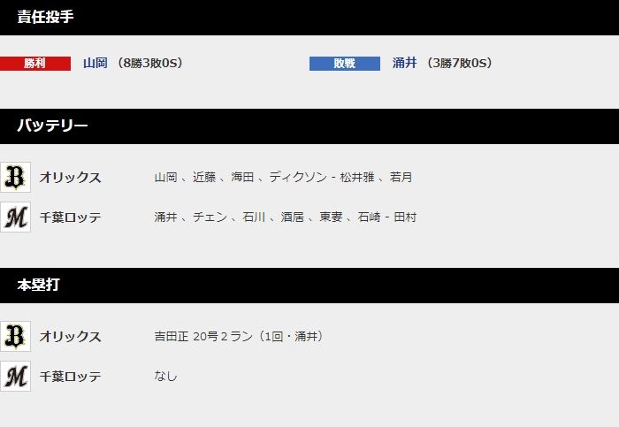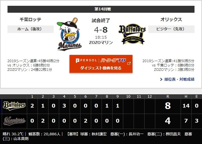 ◆だいやまーくロッテ4―8オリックス(31日・ZOZOマリン)