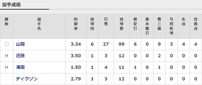 続くロメロは見逃し三振に抑えたが、4回83球、8安打を浴びて6失点でKOされたエースは「こういう形で早い回にマウンドを降りてしまい申し訳ないです」と声を絞り出した。
