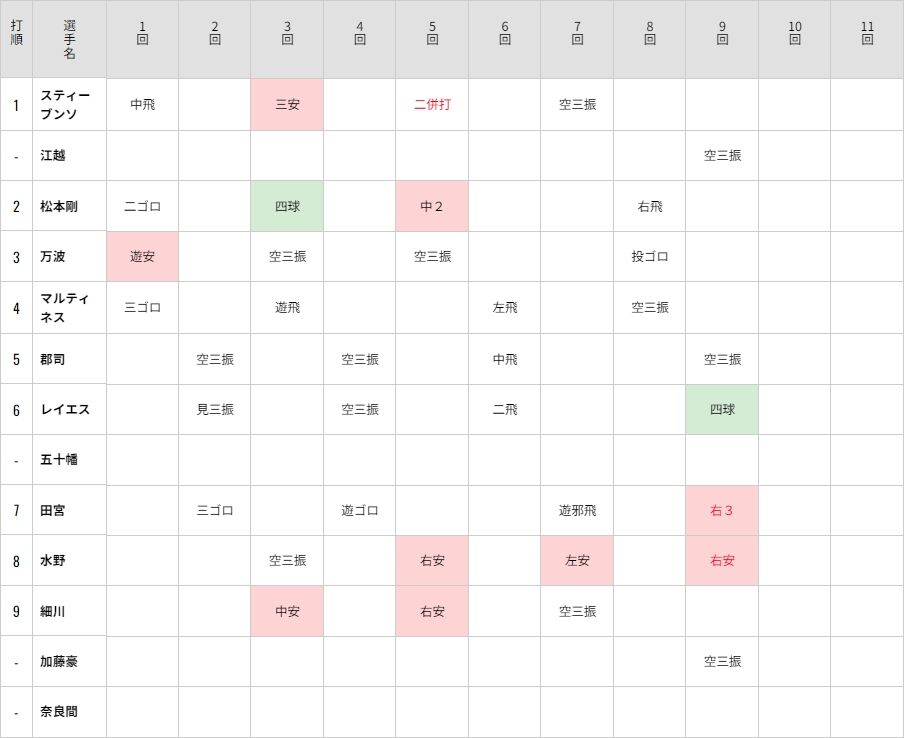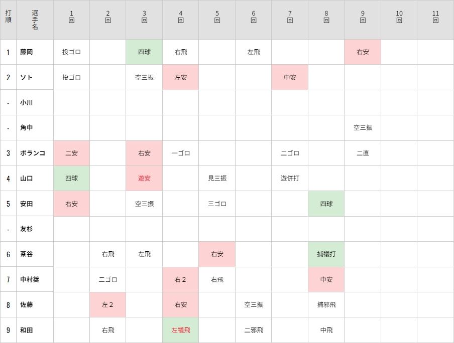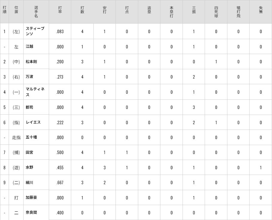 指揮官が悔やんだのは別の場面だった。八回の攻撃で、日本ハムの左腕、北浦を攻め立てて1死一、三塁の好機を作った後に佐藤にセーフティースクイズのサインを出すも初球で捕邪飛に終わったシーン。チャンスを作るも無得点に終わり「今日(の負けは)は自分のせい。八回のセーフティスクイズのところは左(投手)対左(打者)で一塁側にバントするのは結構難しいのですが、佐藤なら出来ると思ってやらせた。ああいうところで難しいかなと思っていて、失敗したのであれで流れが変わってしまった」と悔やんだ。
