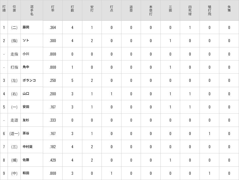 守備のミスについて吉井理人監督(58)は「あれはしようがないです。お見合いして落とされるより、突っ込んでいって落とすほうが全然いい」とかばった。