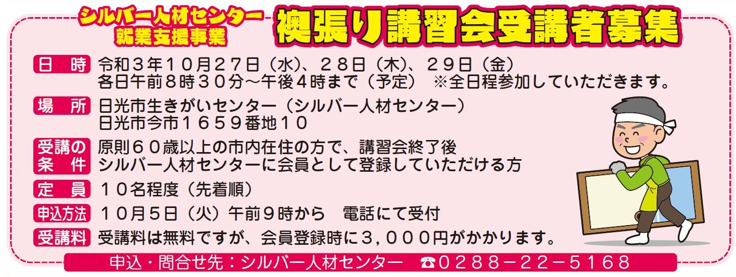 10月27日(水)から3日間、襖の張替講習が当センターで開催されます。[画像:襖張り.png]