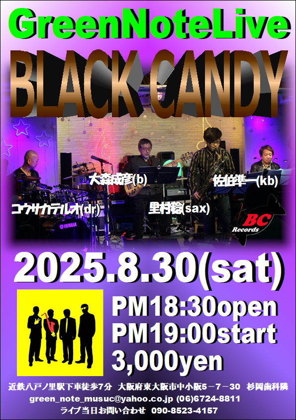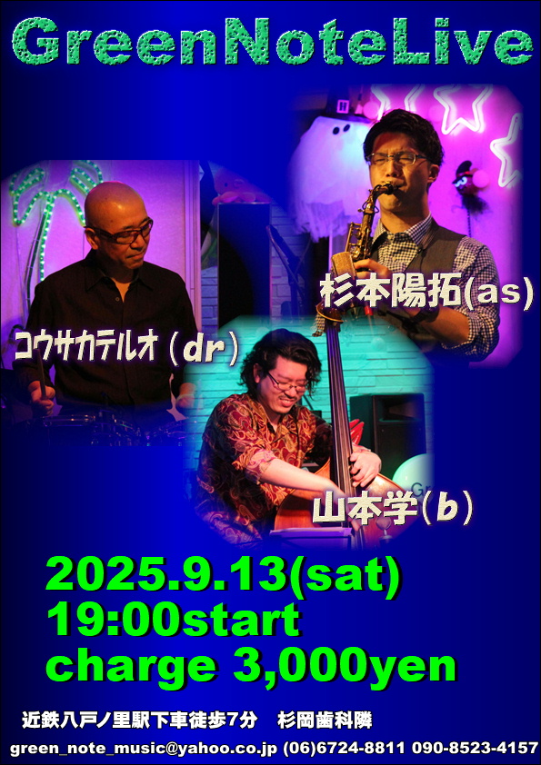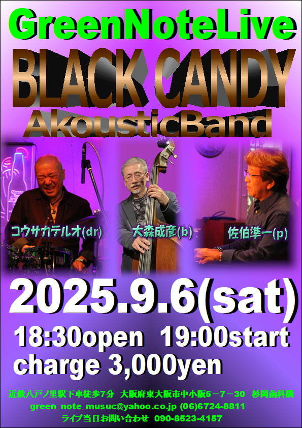 Black Candy Acoustic Band2025.9.6.JPG サックスコードレストリオ コウサカテルオ、山本学、杉本2025年9月13日.JPG 橋本裕カルテット2025年9月20日.JPG 青木美江2025年9月28日.JPG