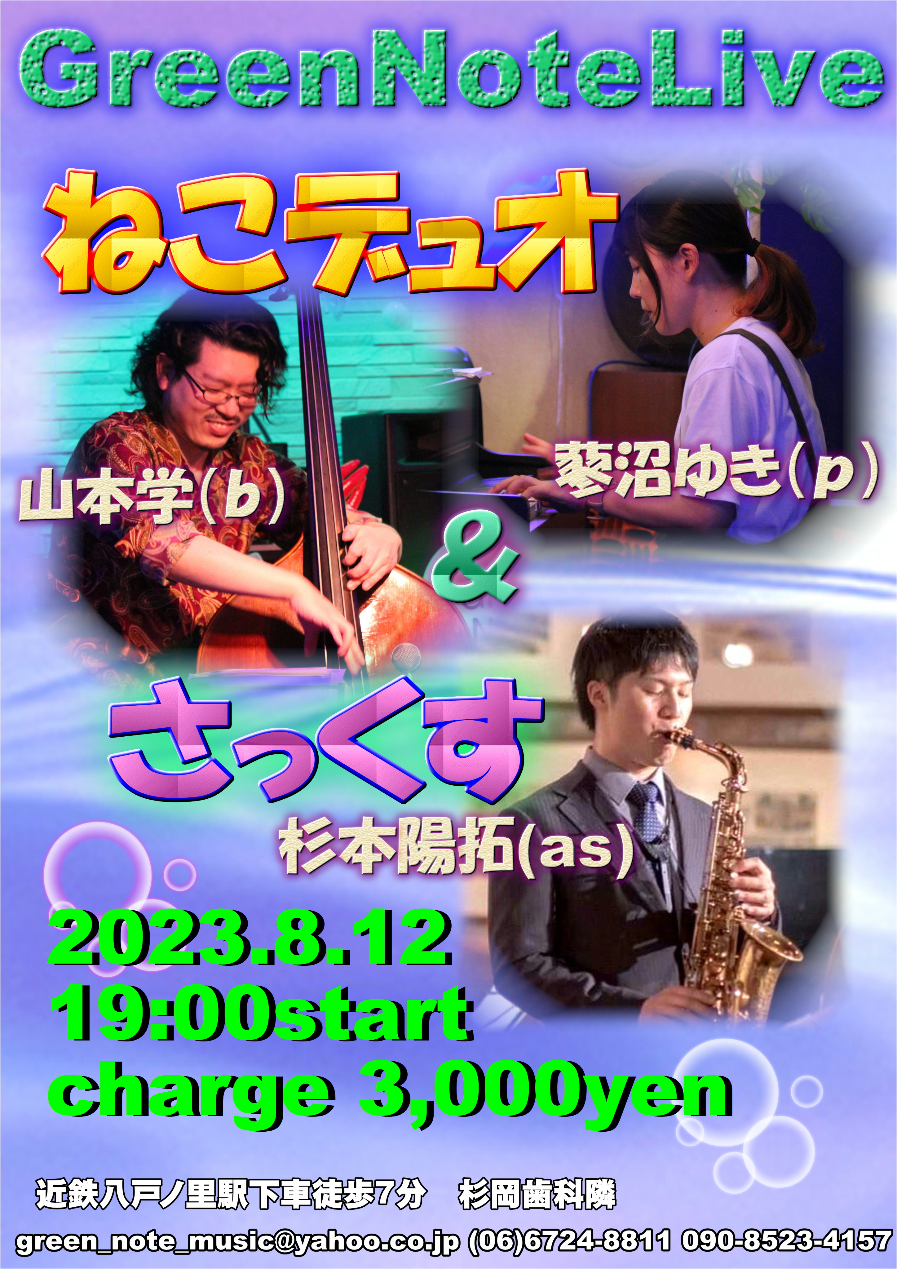 ねこデュオ&サックス2023年8月12日.JPG 橋本有津子トリオ2023年8月20日.JPG 彩ひろみ2023年8月26日.JPG