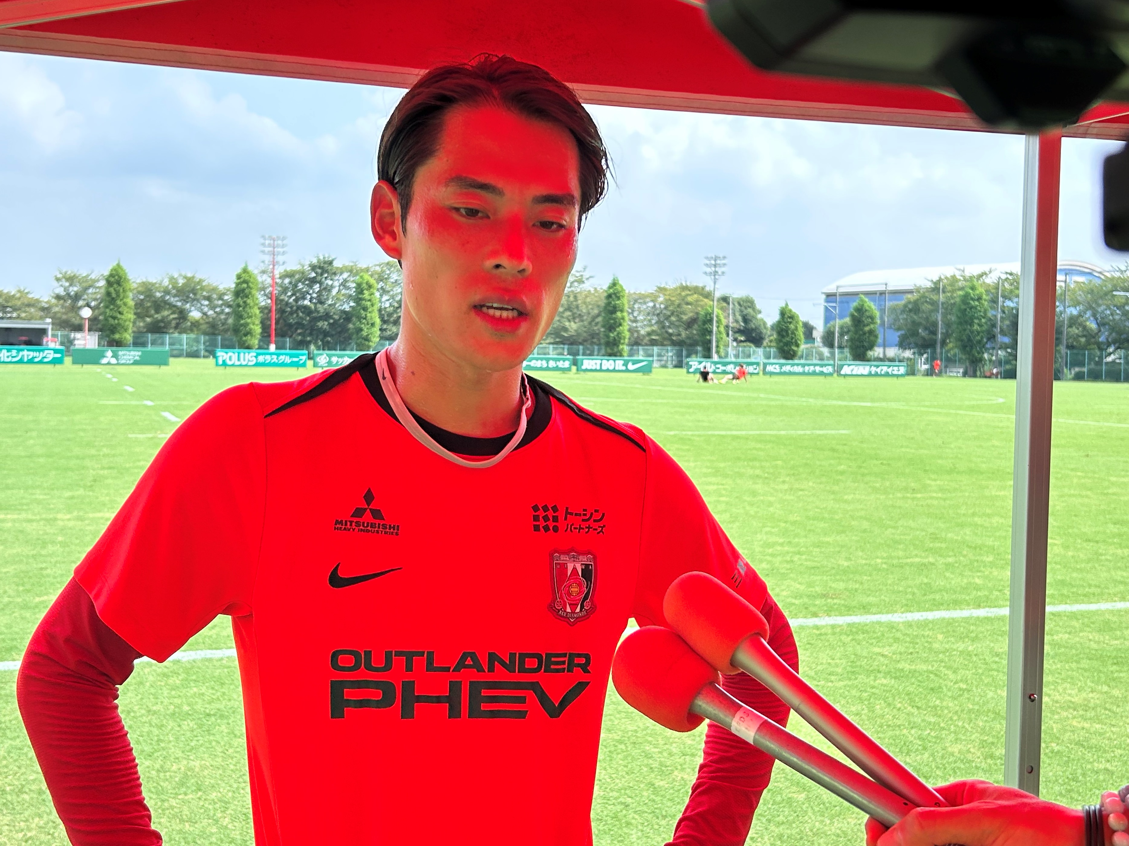 「そうですね、まあピッチ状況とかパスの質、自分のトラップの質とかそういうの全部あってのドリブルなので、そこがうまく合ってなかった時に合わせにいけるように置かないとやっぱりファーストタッチずれちゃうと、何て言うんですかね?自分が置きたいとこに行けないので、それで相手もけっこうわかってきて2枚とかついてきて、そこの判断というんですかね、どっちに仕掛けていける、どこのスペースにしかけるとかは、そこもまだまだ課題ではあるので、そこはもう、どんどんどんどん数こなしてくしかないと思っているので、やってやって失敗して(苦笑)失敗したら取り返して、またチャンスにつなげれるように、やれば良いとは思っているので(頬笑)まぁでもその中でもチームの流れとかは見て今はチャレンジして良い時、悪い時っていうのを判断できるようにならないといけないとは思うんですけど、まぁ!自分がチャレンジしやすい環境でもあるとは思うので、選手、サッカー..含め!なんでそこはやっぱり、多分、チャレンジしなくなったら自分の良さっていうのは消えちゃうと思うので、そこは忘れずに、失敗しても続けていきたいなっていうふうに思います」
