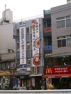 付記;その後、'08,05.27にたまたま門前仲町へ伺ったところ、すっかり街の風景と化していた『井崎さん〜』の垂れ幕は無く、お店はカレーショップになってました。長年見慣れてただけに残念!カレーショップも誰か特定のひとに来店を呼びかけてくれないものか...。