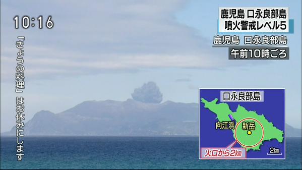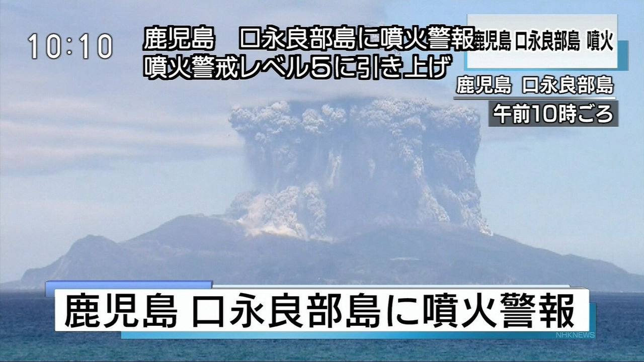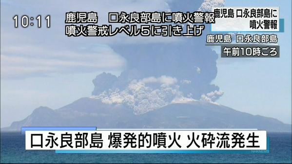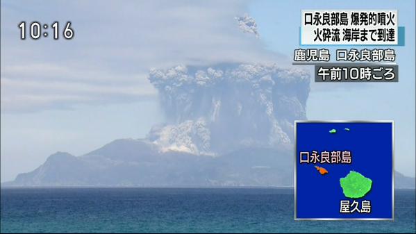 口永良部島で爆発的噴火 火砕流発生、全島避難へ