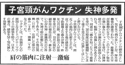 けいれんや嘔吐(おうと)、全身の痛みなど、さまざまな副作用の報告が確認されている子宮頸(けい)がんワクチン。