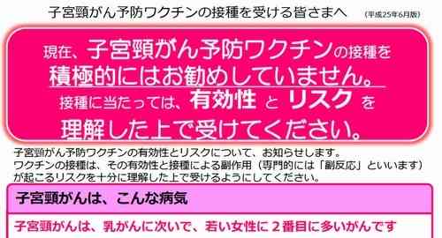 子宮頸ガンと検索しただけで、ワクチン摂取に消極的になる情報が沢山出てくる。それでも有効性を信じる人は摂取させれば良いし、無効、危険と感じる人は拒否すれば良い。同じ情報を与えられ、どう判断するかは当人次第。結果どうなろうと自己責任。