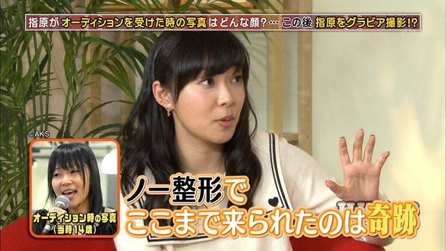 指原に限らず整形ネタのスレタイ飽きたよ。いい加減どうしても整形してるとしたいのなら確証つかんでからにしろよ。