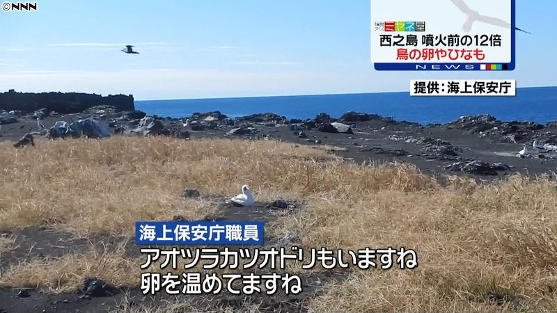 2013年に噴火が始まり、新たな島ができた小笠原諸島の西之島。先月28日、海上保安庁が上陸した際に撮影した西之島の最新映像が公開された。西之島は2013年から噴火が始まり、現在は噴火前の約12倍にあたる大きさに拡大している。島にはいたるところで鳥の卵が見られ、親鳥の下に体をもぐらせるひな鳥の様子も見られたという。