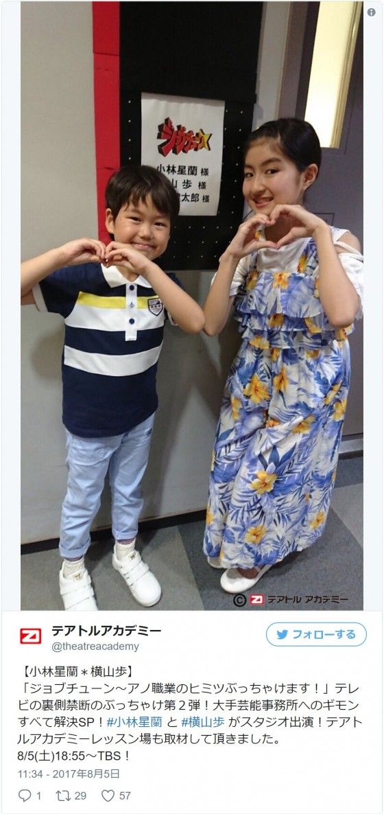 小林というと、カルピスのCMでその愛らしい笑顔が注目され、一躍人気子役に仲間入り。谷花音とのユニット・すたーふらわーとして歌手デビューを果たすなど活躍を続けた。そんな小林も中学生になり、9月の誕生日を迎えれば13歳。番組に登場した小林の大人びた姿に、Twitter上には「え!?これ小林星蘭ちゃん!?」「星蘭ちゃんめっちゃ大人っぽくなっててびびった」「小林星蘭ちゃんいつの間にこんなにでっかくなったんや...」「小林星蘭ちゃん大人になってる」「星蘭ちゃんが誰かわからないくらい成長してた...」という驚きのつぶやきが続々投稿された。