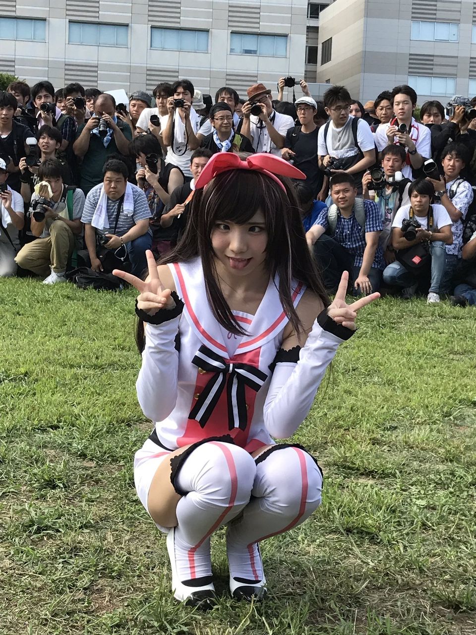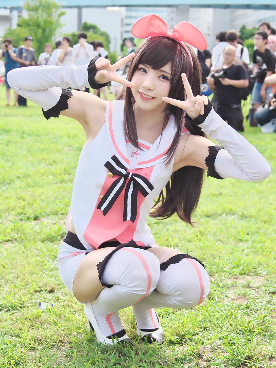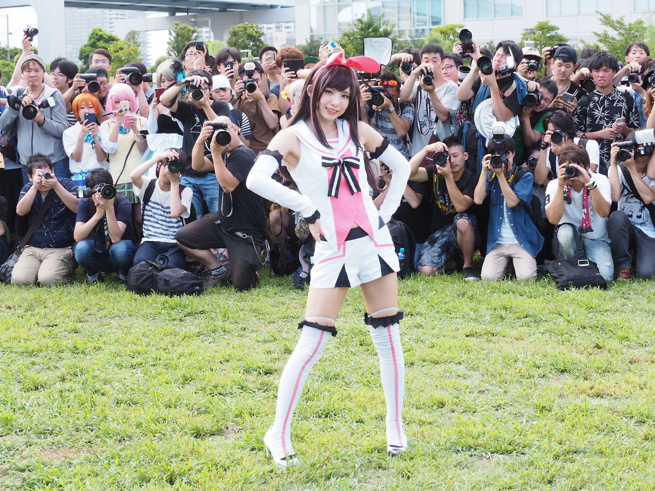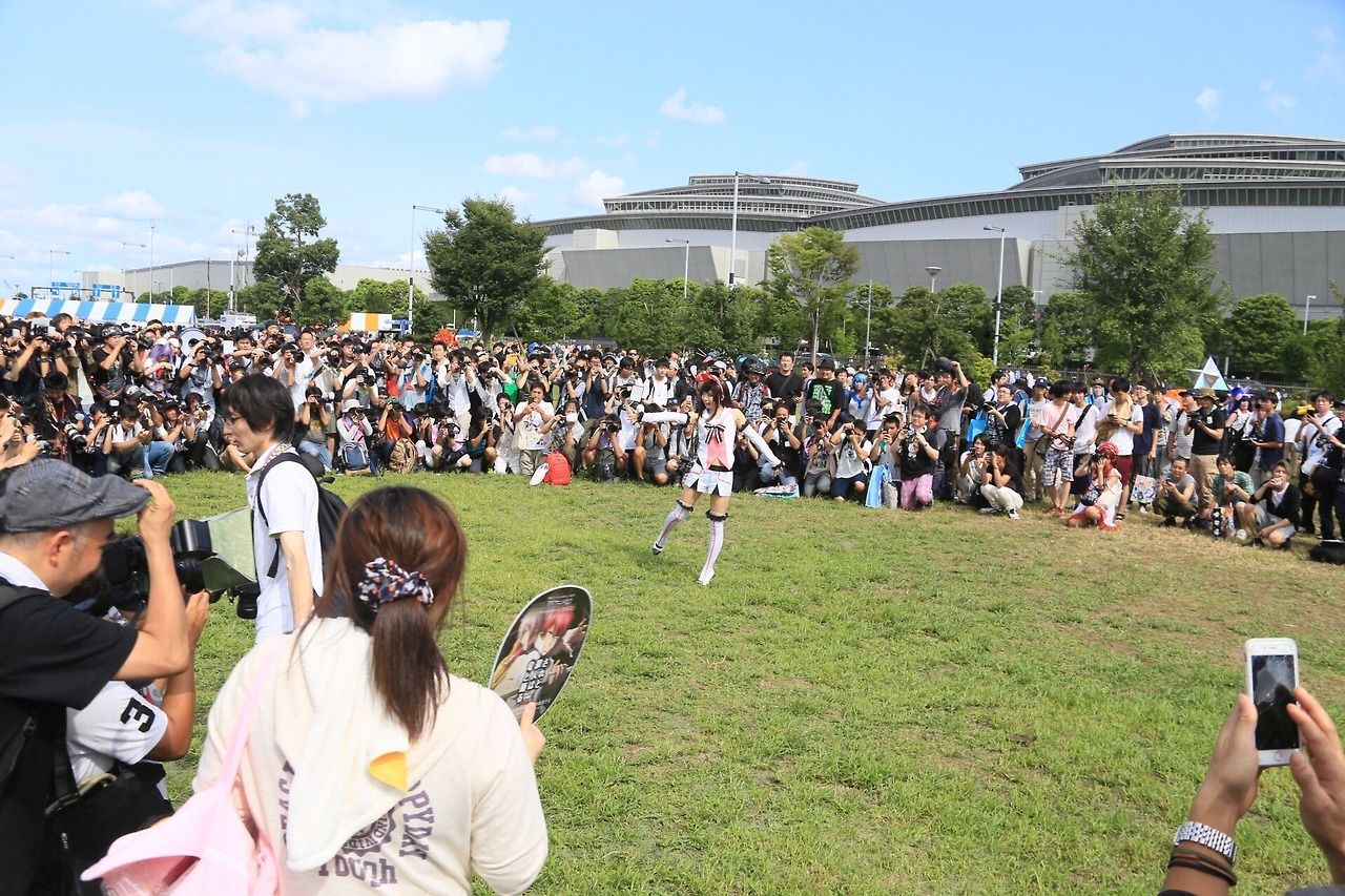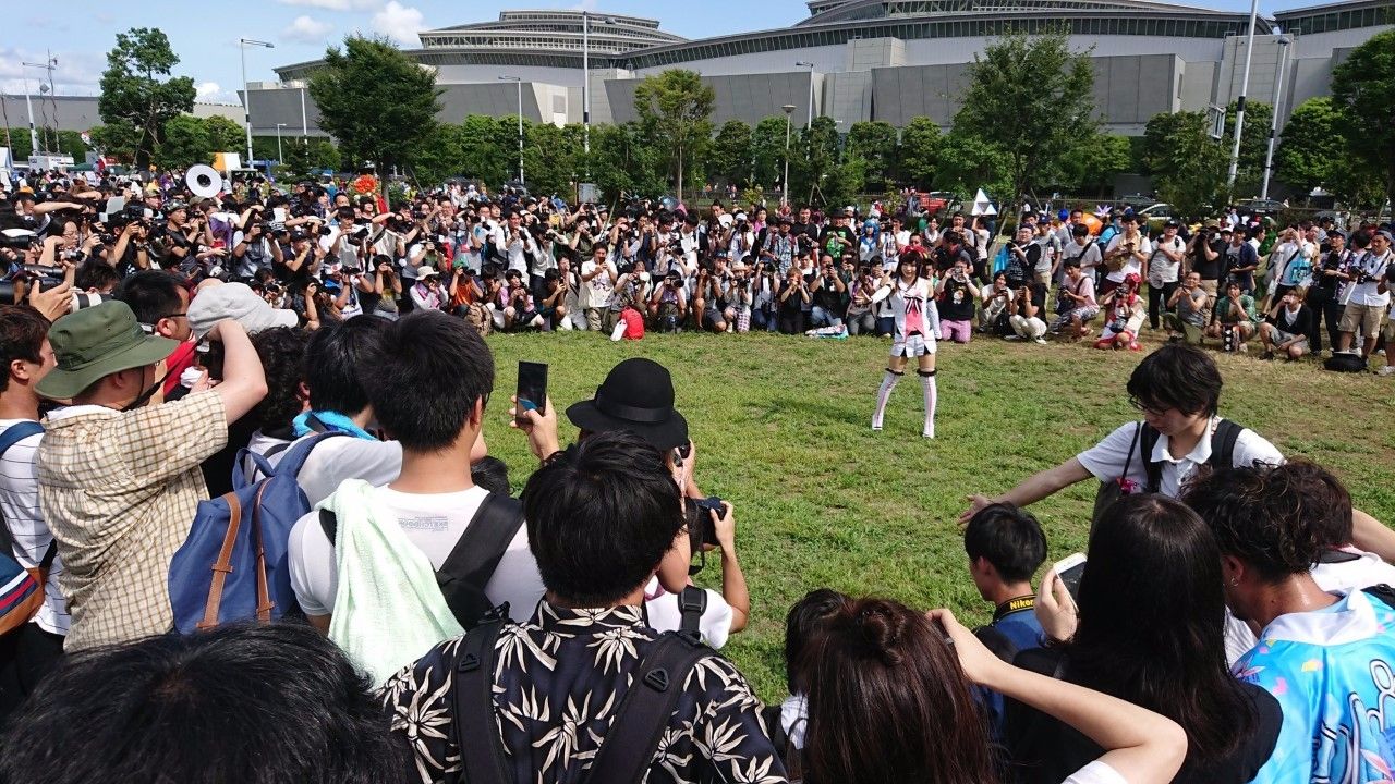 こんなコスプレ女にカメラ向けて虫のように群がるいい年こいたオタク達...カアイソウ...