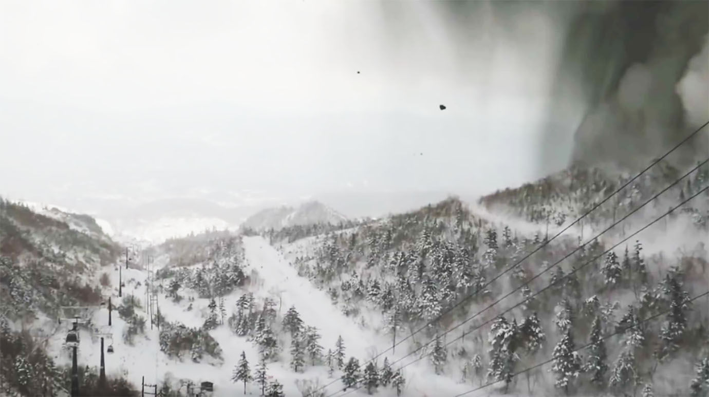 そんな巨大噴石が降り注ぐ瞬間をとらえた映像が、インターネット上で公開され、視聴者に大きなショックを与えている。その動画は高い場所からゲレンデを映した映像で、揺れのあと、大規模な雪崩と噴石が襲うシーンが映されている。