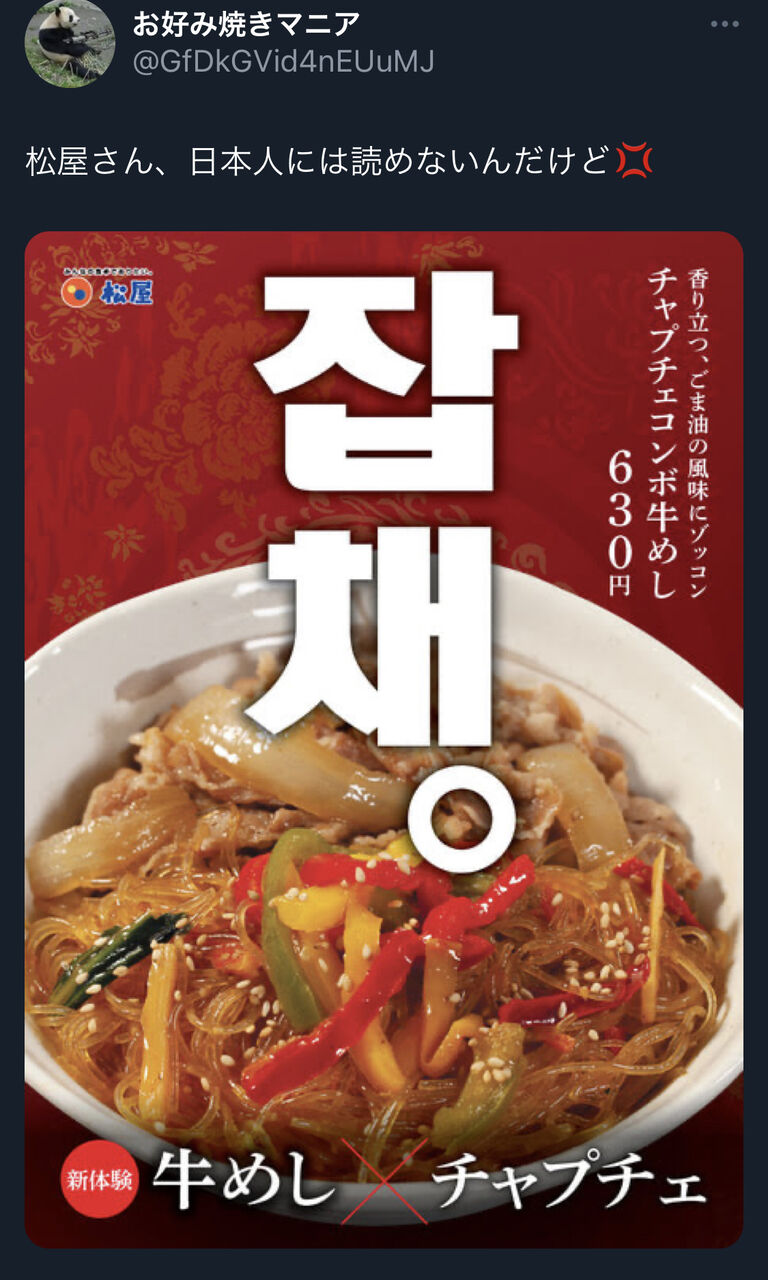 【悲報】松屋さん、うっかりハングルの広告を出してしまい普通の日本人がブチ切れへ...