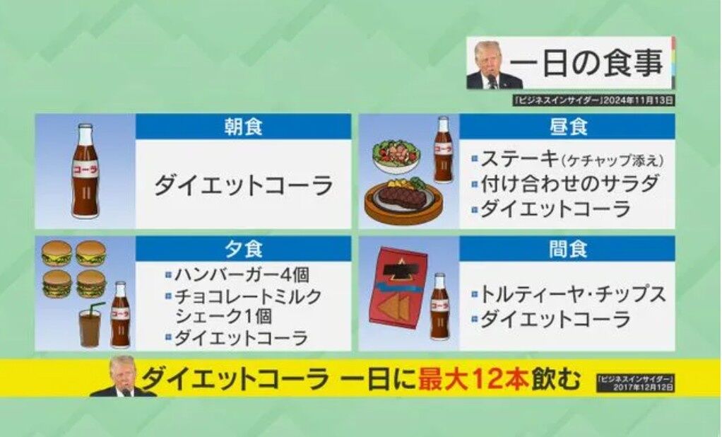トランプの身体はこれに適応した代謝が出来上がってるんだろうなw