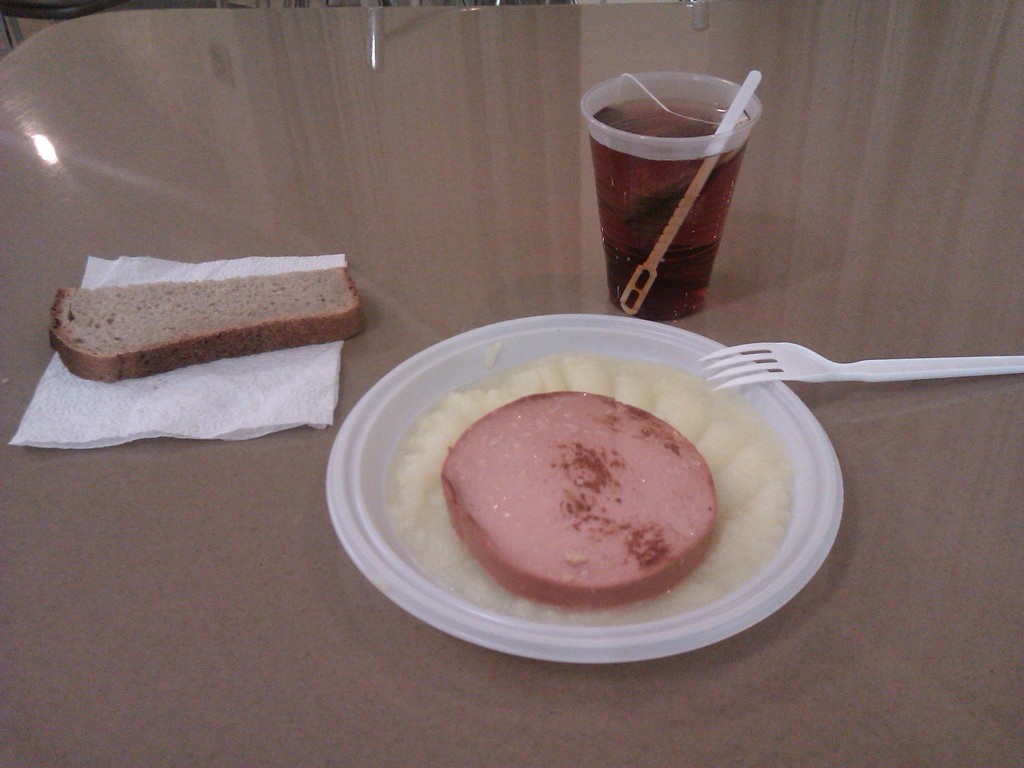 それでもお腹が空いたら売店に行って、半分に切ったフランスパンに具材が挟んであるものを食べたり