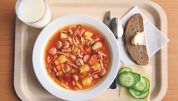 スープとサラダが選択式で、同じ容器に放り込まれるからこうなった