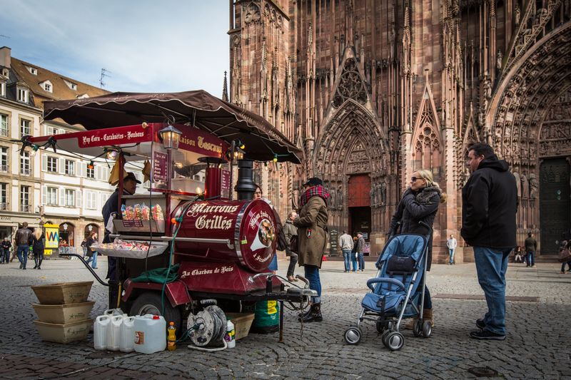 家に帰る途中で必ず焼き栗を売ってるこんな屋台に寄ってるわ