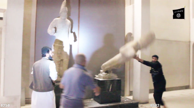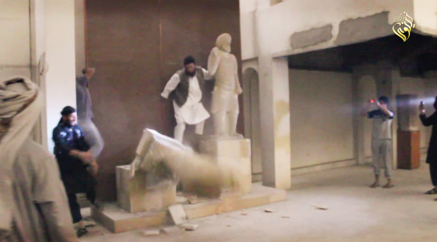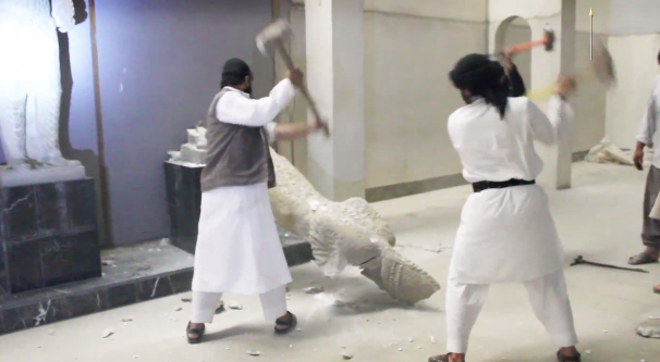 過激派組織「イスラム国」は26日までに、イラク北部モスルのモスル博物館に収蔵された文化的価値の高い多数の像をイスラム教で禁じられた「偶像」だとして破壊する映像をインターネット上に公開した。映像では男が「これら古代の遺物は偶像であり、アラー(神)が破壊を命じている。何十億ドルの価値があろうとわれわれの知ったことではない」と説明。多数の男が像を台座から床に押し倒したり、ハンマーを使ったりして徹底的に破壊した。AP通信によると国連教育科学文化機関(ユネスコ)は26日の声明で、イラク文化財保護に向け国連安全保障理事会の緊急会合招集を求めた。
