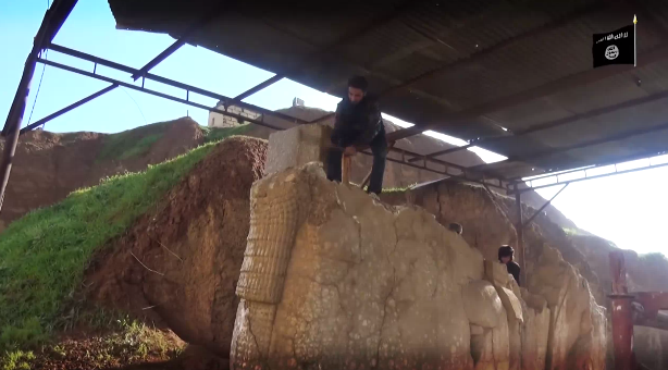 ISISがアッシリアやメソポタミアの貴重な古代石像を破壊をする動画を公開した