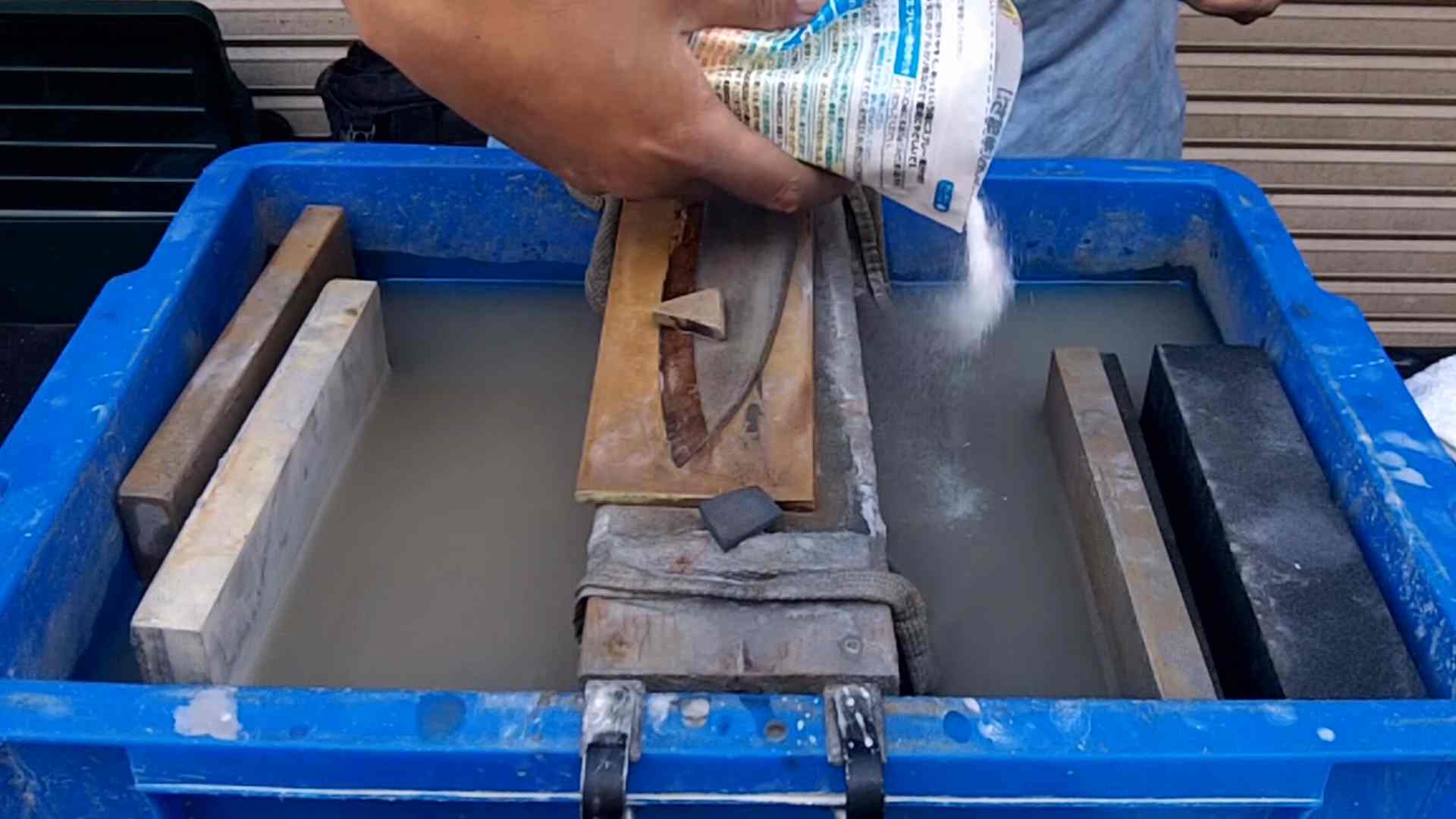 砥石を取り替えている上に、砥石自体を平らにするために擦りあわせている。
