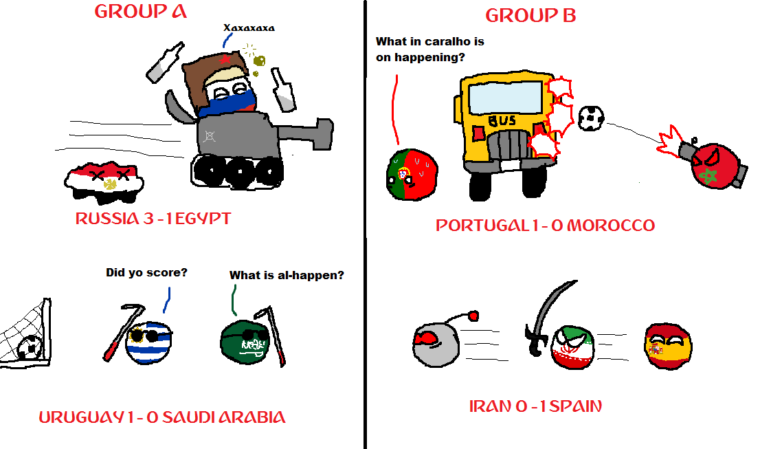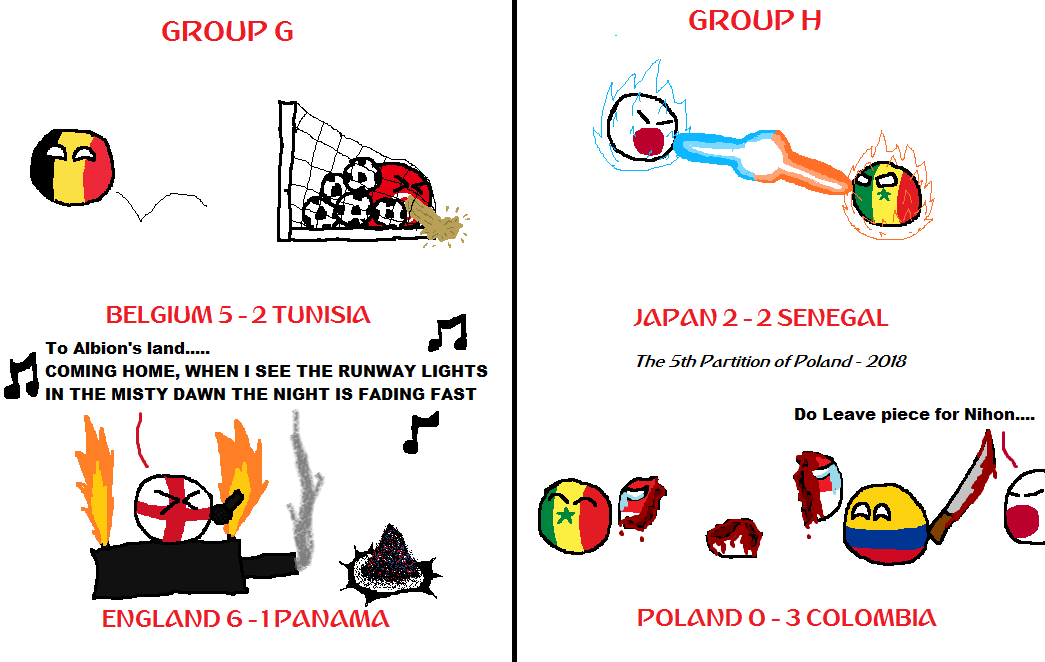 外国人「ロシアW杯の第2戦の全試合をイラストにしてみたよー」【ポーランドボール】