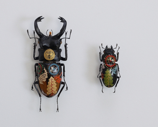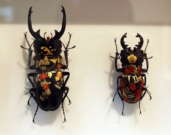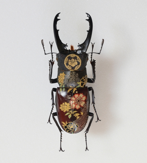 漆塗りと甲虫って質感が似てるところがあるから蒔絵風の柄なんかは面白いと思うな。