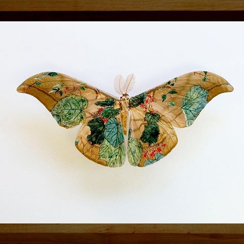 蛹から孵化してミノガになり、標本にしてから描画してミノに加えたらそれはそれで又アートになるかも。