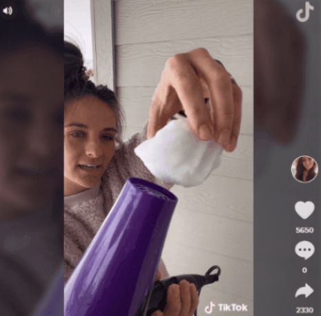 ある女性はバスルームの洗面台で雪玉をライターであぶりながら