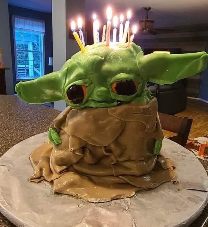 チューバッカの頭を作ってから耳を付けて緑に塗ってヨーダに変えたように見える