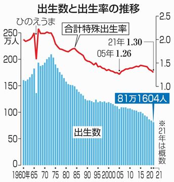 21年の出生率1.3 出生数81万人で過去最少更新 下落幅縮まらず