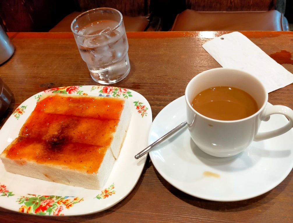お茶と水ようかんは宿なのか旅先の喫茶なのか?もし自宅だとしたらスゴイ環境だ。