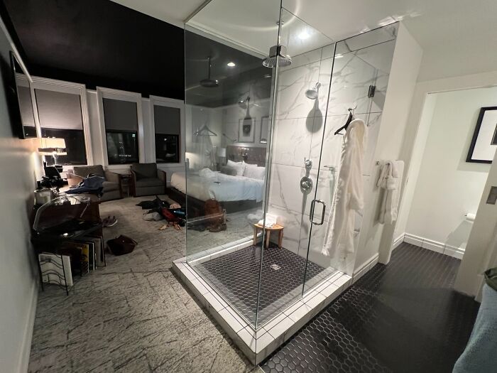 ガラス張りのシャワールームがホテルの部屋の真ん中にあるんだが