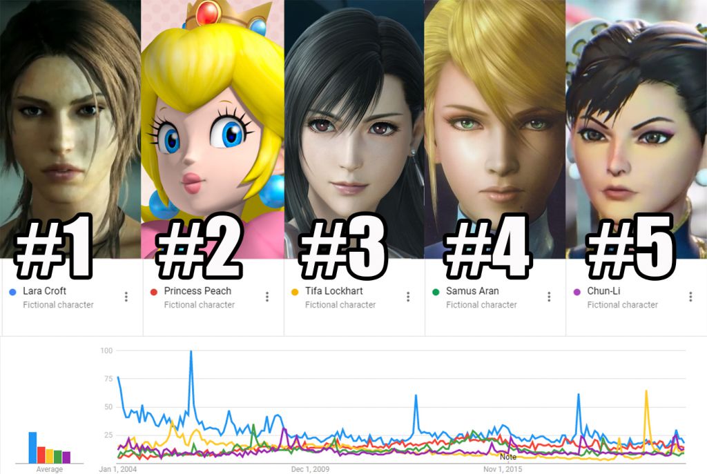 認知度が高いのはララ・クロフト、ピーチ姫、春麗だと確信しているよ
