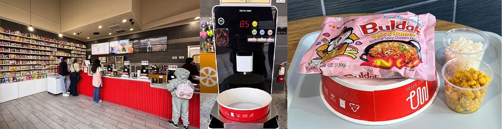 器と調味料を買ってセルフでお湯を注ぐんだ