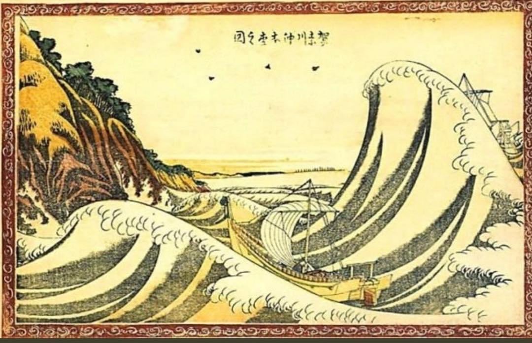 この船は手漕ぎの特急運搬用で地中海のガレー船と同じように使うモノ。それを北斎がず〜っと漁船と勘違いしていたのは何故?って話。(他の絵でも漁船として描いている本スレの43歳でも間違って描いてる)