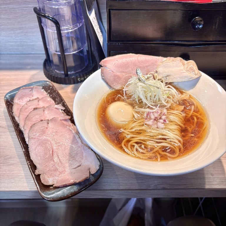 数年前まで時折利用していた記憶ではラーメンのスープは1種類だけ。魚介系出汁のコク醤油あっさり味。少しだけ柚子の香り。一杯千数百円だけど、2杯分くらいの量がある。チャーシューやメンマは別皿で頼める。昼や夕方には店の外に行列。もしかしたら現在は変わっている可能性もあるけど。