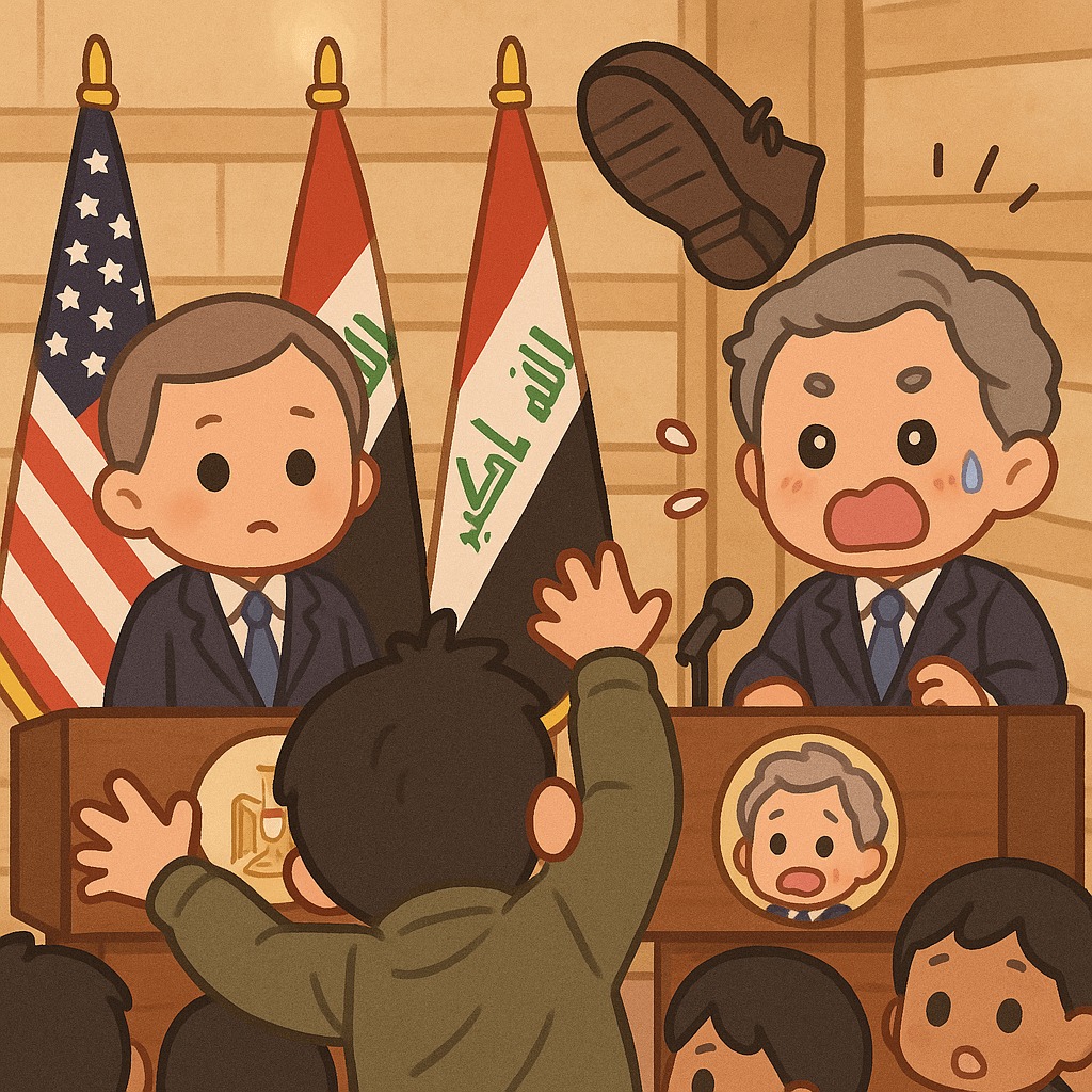 ブッシュが笑顔だったのを思い出したよ、何で靴が突然飛んできたのか本当に困惑してた