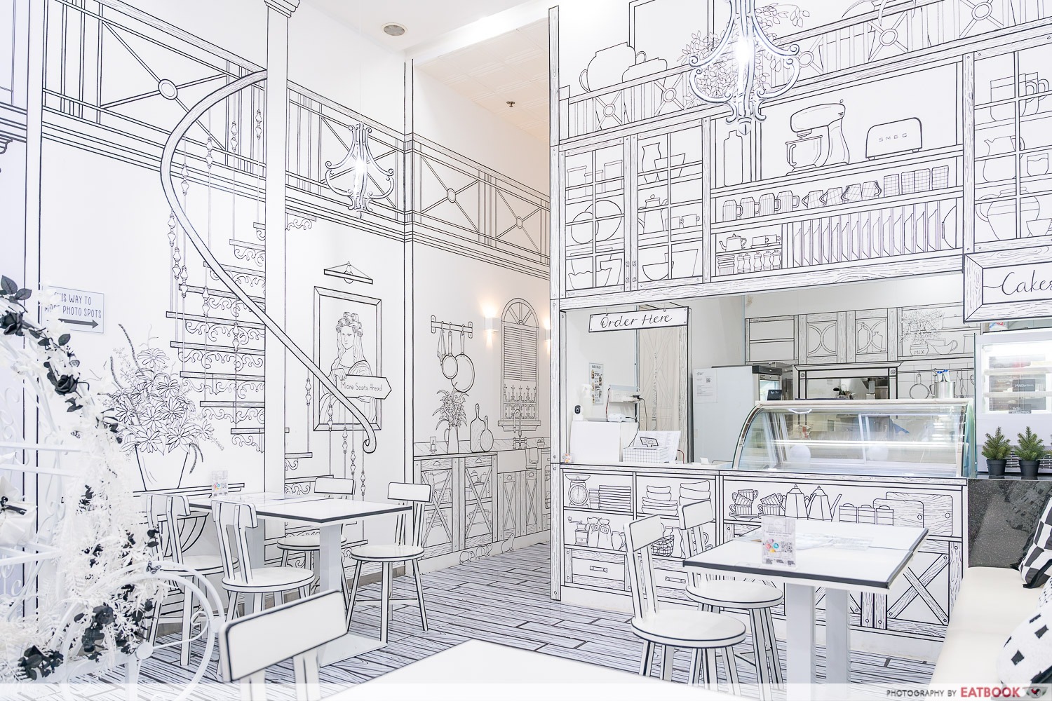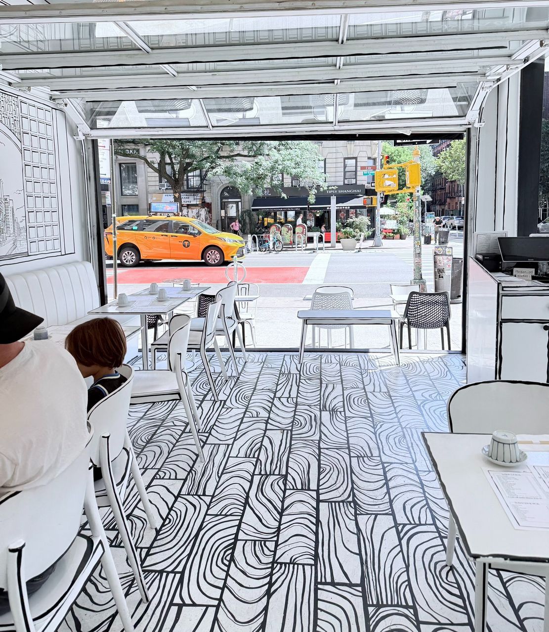 Shirokuro, a Japanese restaurant in NYC's East Village, where the interior mimics a hand-drawn black-and-white sketchbook,