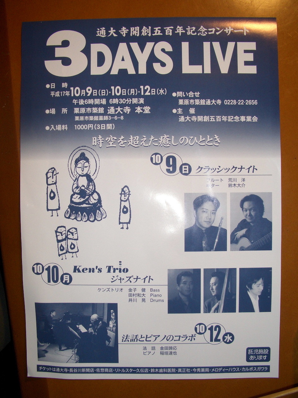 三日間行われるイベントの二日目にKen's Trioで出演します。
