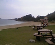 写真はジュゴンがいるという基地内のビーチ。普天間基地がここの海に移転するかもしれない、という場所です。